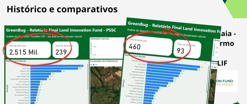 Na fazenda de nosso parceiro em Monte do Carmo - TO, conseguimos registrar dados para comparar as atividades das aves em uma área preservada e uma área acometida por fogo. Com quase 2 mil detecções a mais na área preservada, ficou claro o quanto um fogo pode reduzir as atividades dos animais. Com os dados, conseguimos inclusive comparar as espécies que primeiro retornaram à área degradada, espécies mais sensíveis e as mais reslientes.